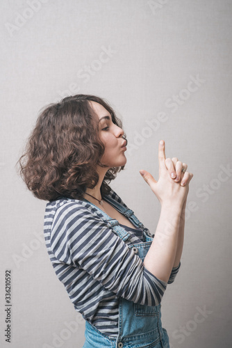 Fototapeta premium Beautiful Young Girl Hand Pretending To Pistol Shoot