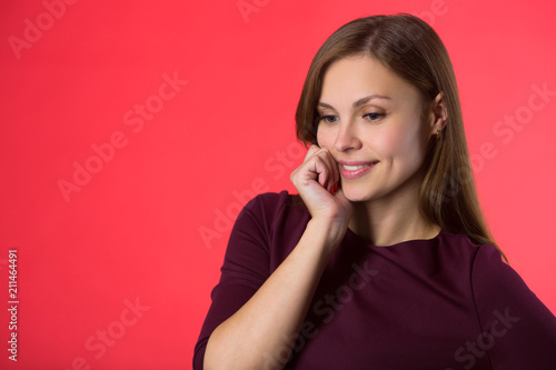 © Alexandr, Fototapeta premium beautiful young girl with her hair on a red background