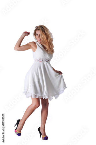 © murattellioglu, Naklejka premium beautiful young happy women in white dress