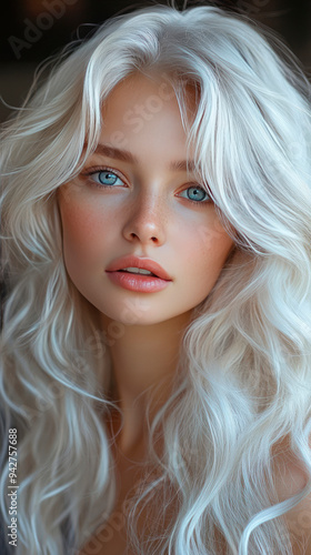 © elena_hramowa, Fototapeta premium Beautiful young model woman with natural curly hair in beauty salon sitting on a chair.