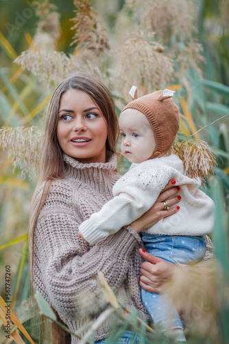 Obraz premium Beautiful young mother with her little daughter 2 years old in green park....