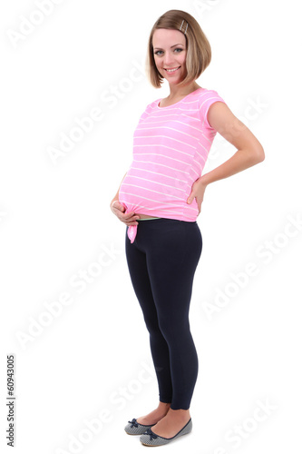 Fototapeta premium Beautiful young pregnant woman isolated on white