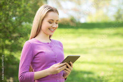 © Friends Stock, Fototapeta premium Beautiful young woman at garden