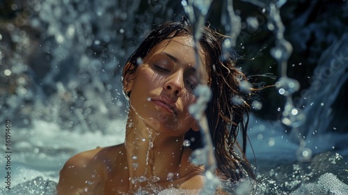 © Marco, Obraz premium beautiful young woman bathing in a river
