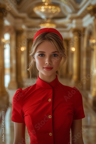 Fototapeta premium Beautiful Young Woman Dressed as Cleaning Lady in Luxurious Setting