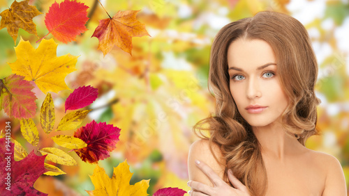 © Syda Productions, Naklejka premium beautiful young woman face over autumn leaves