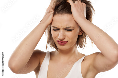 © vladimirfloyd, Fototapeta premium beautiful young woman has a bad headache