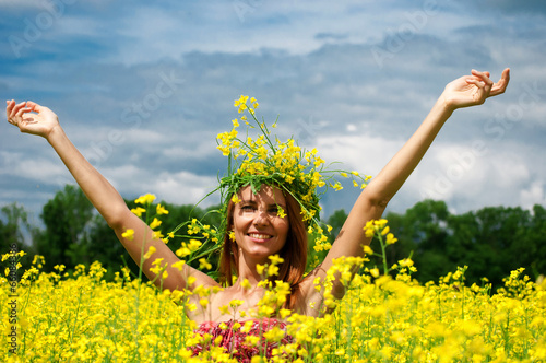 © Natalija Sirokova, Naklejka premium Beautiful young woman in a raps field