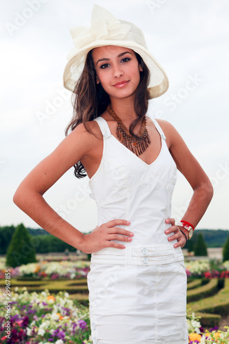 Fototapeta premium Beautiful Young Woman in the Versailles Gardens in Paris