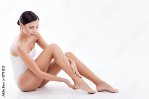 Obraz premium Beautiful young woman is treating her feet