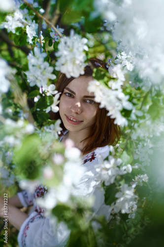 © igor_shmel, Fototapeta premium beautiful young woman near the apple tree