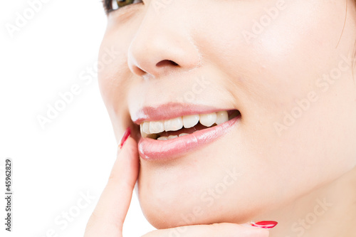 © one, Obraz premium Beautiful young woman on white background. Portrait of asian.
