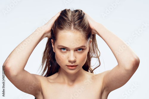 © SHOTPRIME STUDIO, Fototapeta premium Beautiful young woman on white isolated background, portrait