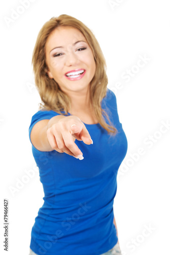 Fototapeta premium Beautiful young woman pointing on you.