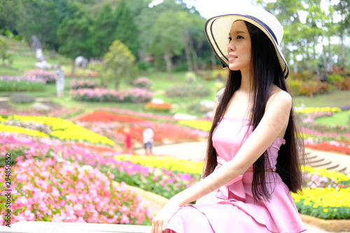 © WS Studio 1985, Fototapeta premium beautiful young woman relaxing in flower garden