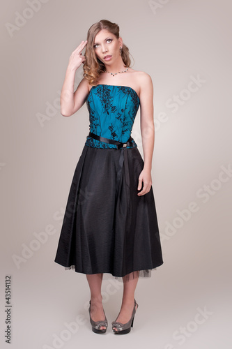 Fototapeta premium Beautiful young woman wearing a sexy dark evening dress