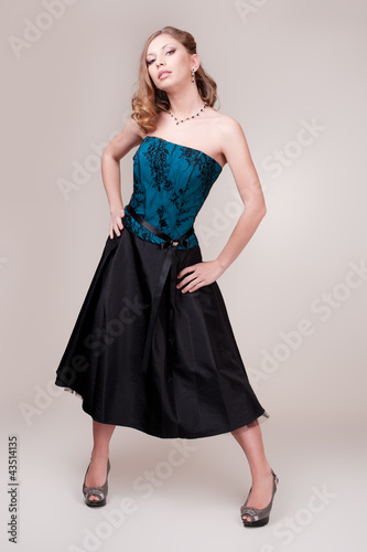Fototapeta premium Beautiful young woman wearing a sexy dark evening dress