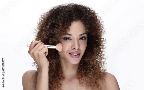 Obraz premium beautiful young woman with a make-up brush.
