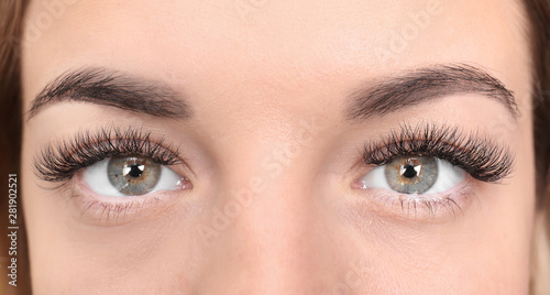 Fototapeta premium Beautiful young woman with eyelash extensions, closeup