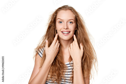 © paffy, Fototapeta premium Beautiful young woman with flying hair