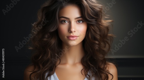 Fototapeta premium Beautiful Young Woman With Long Brown Hair