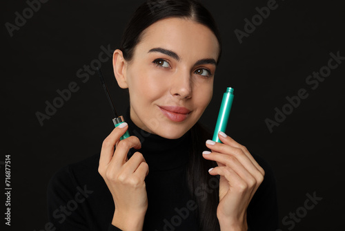 © New Africa, Obraz premium Beautiful young woman with mascara on black background