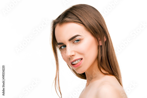 © master1305, Fototapeta premium Beautiful young woman with teeth braces