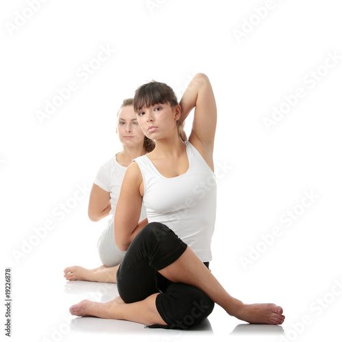 Obraz premium 2 Beautiful young womans doing yoga exercise