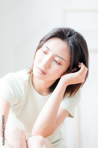 Fototapeta premium Beautiful young women sitting by the window of Asia