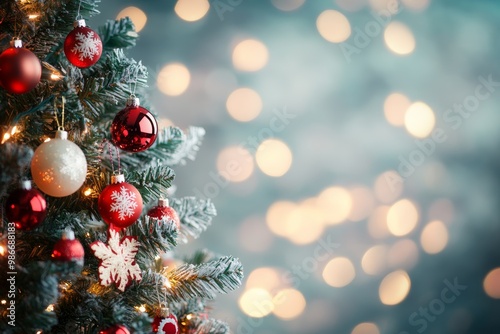 Fototapeta premium Beautifully adorned christmas tree with a softly blurred background for a festive atmosphere