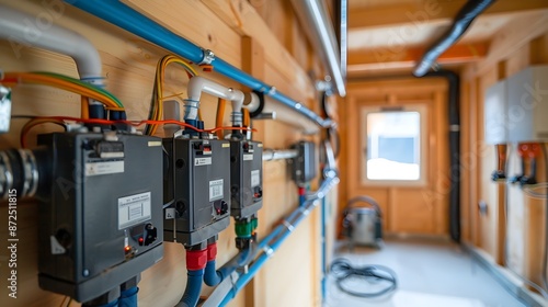 Fototapeta premium Beautifully Arranged Electrical Pipes in Bright Organized Interior Space of a House