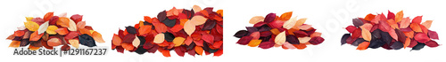 © R Studio, Fototapeta premium Beautifully arranged piles of vibrant autumn leaves in a variety of warm colors and patterns perfect for seasonal decor design and background purposes