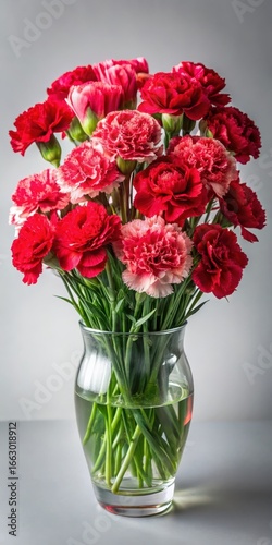© Praphunsak, Fototapeta premium Beautifully arranged red edged carnation bouquet in a vase