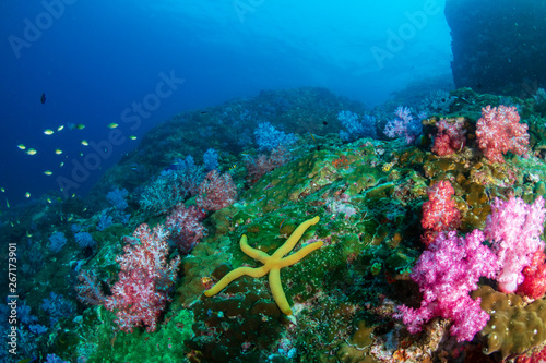 Fototapeta premium Beautifully colored soft corals on a tropical reef in the Mergui Archipelago