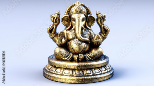 Fototapeta premium Beautifully crafted golden statue of Ganesha, Hindu deity known for wisdom and prosperity, is depicted serene pose. intricate details and craftsmanship highlight cultural significance and artistic