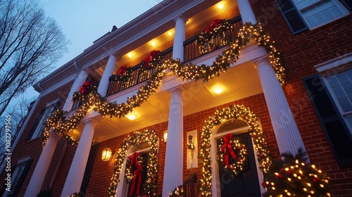 Obraz premium Beautifully decorated house with festive lights and wreaths during winter season