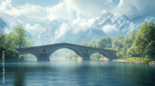 Fototapeta premium Beautifully designed bridge over river perfect for travel photography