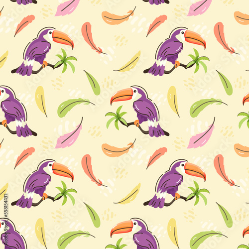 © SmashingStocks, Obraz premium Beautifully designed toucan pattern, flat vector