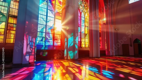 Fototapeta premium Beautifully Detailed Colorful Stained Glass in Church Creates a Stunning Display