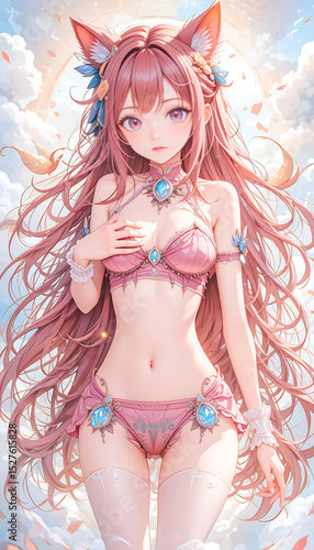 © HABI ANGGARA PUTRA, Fototapeta premium Beautifully drawn young female characters wearing fantasy-inspired clothing that exudes elegance. The art style combines elements of anime and modern fantasy.