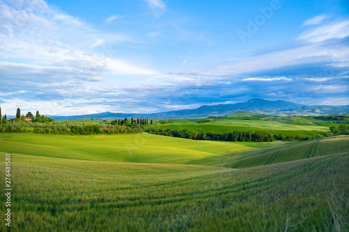 Fototapeta premium Beautifully illuminated landscape of Tuscany . green hills