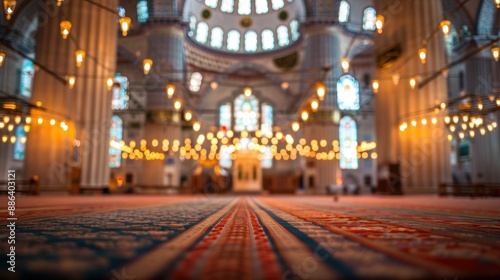 Obraz premium Beautifully lit interior of a mosque with patterns.