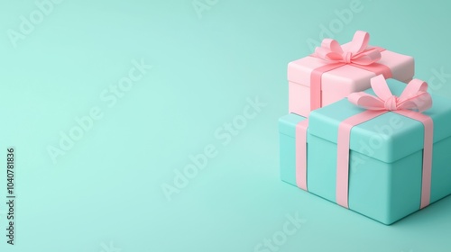 © ADD PHOTO, Obraz premium Beautifully Wrapped Gift Boxes in Pastel Colors on Mint Green Background
