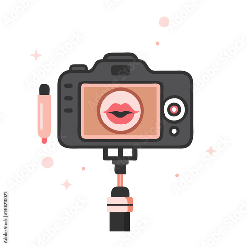 © Olga, Fototapeta premium Beauty camera with lipstick on tripod