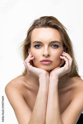 Fototapeta premium Beauty face woman natural healthy cosmetic skin pure sresh beautiful female concept