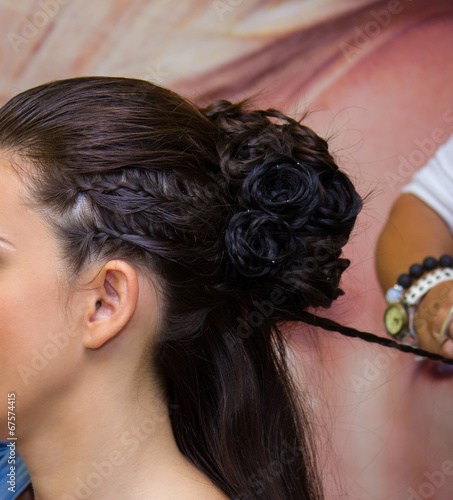 © Magdalena Ruseva, Naklejka premium Beauty hairstyle with pigtails