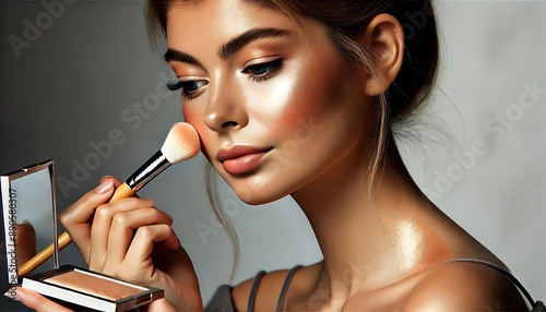 © na, Fototapeta premium Beauty Influencer Applying Highlighter - Glowing Makeup Look