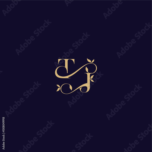 Fototapeta premium beauty leaf monogram logo organic and elegant concept TJ wedding initial letter