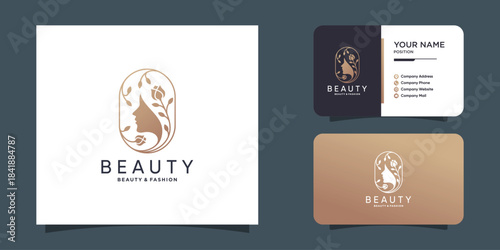 Fototapeta premium Beauty logo with face and flower concept Premium Vector