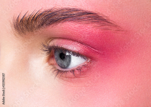 Obraz premium Beauty makeup pink eyes close up retouched skin